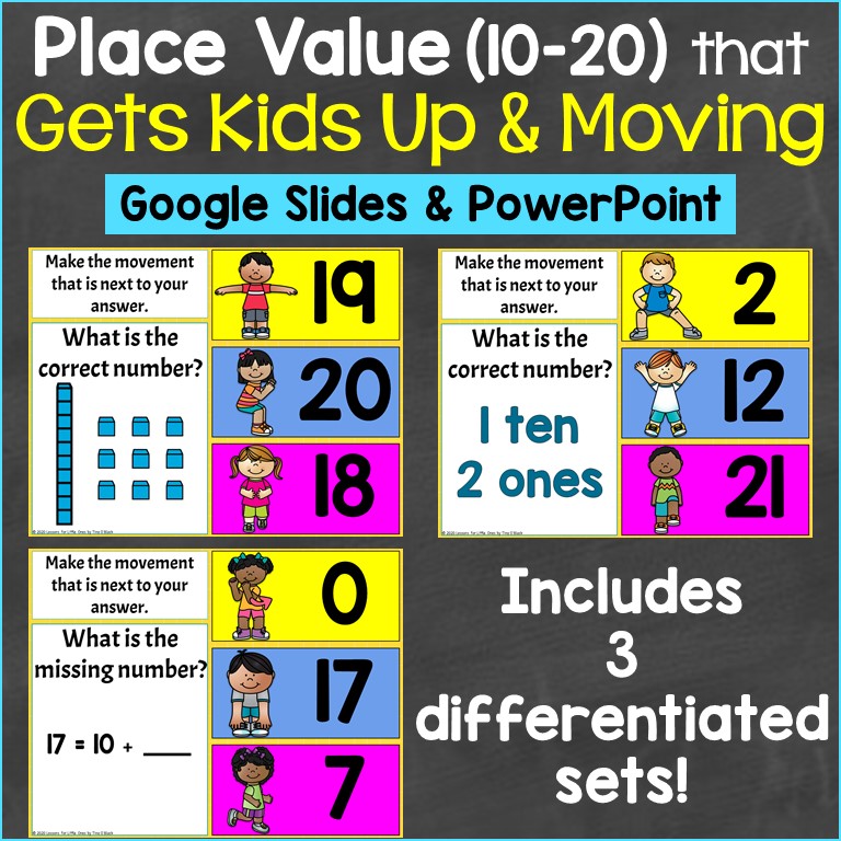 Since our young learners just are not wired for this type of environment, I wanted to create a way for them to get up and move while learning. Because our school requires activities to be linked to standards, I created activities that require students to show their answers to questions by doing movements instead of just saying or inputting their responses. This way, they are using purposeful movements to help them learn and practice standards. Using purposeful movements during a lesson enhances students’ comprehension and retention and makes learning more fun!