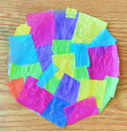 Give each student a paintbrush, a container of watered-down (diluted) glue, tissue paper squares in a variety of colors, and a wax paper circle.