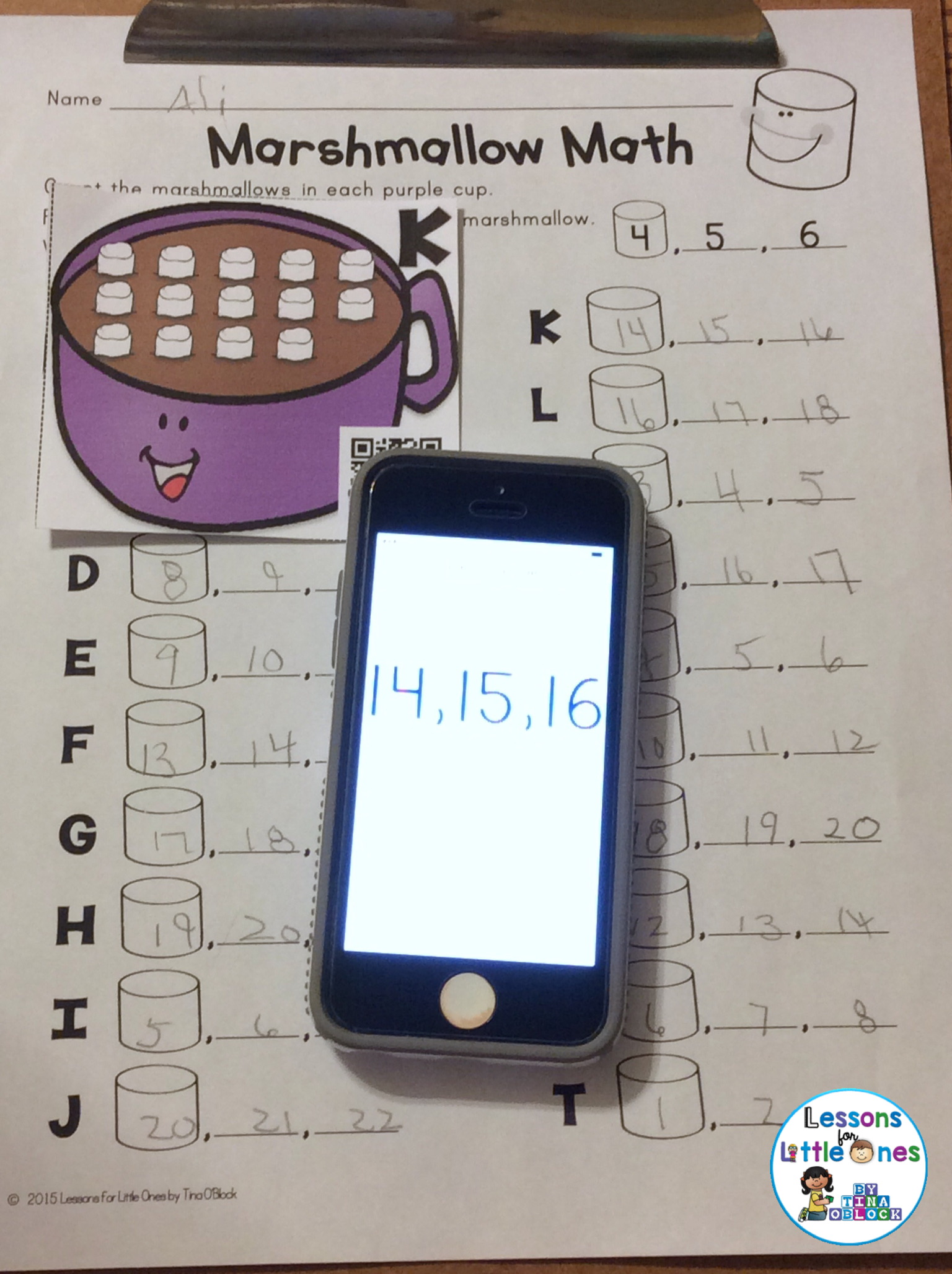 Students count the marshmallows (in ten frames, tallies, or groups) and trace the number.