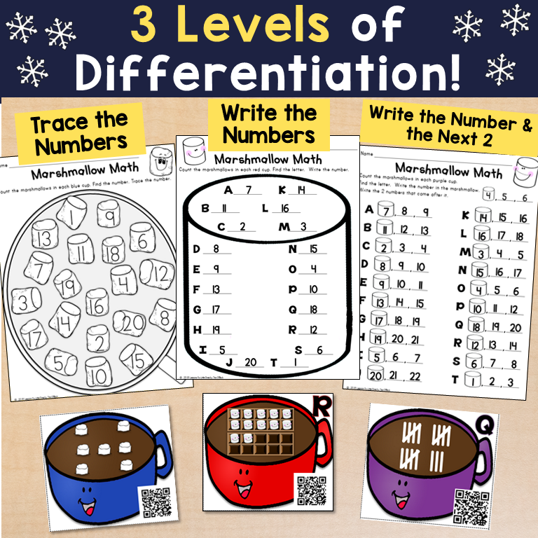 These winter math centers support key kindergarten counting and number sense skills and align with Common Core standards including: