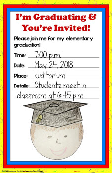 I also wanted graduation invitations that would be sure to catch parents’ attention and not get thrown away which is why I included a personalized version. Every year I put up a “Grinning Graduates” bulletin board with student-drawn portraits with graduation hats and the parents LOVE it and get very sentimental seeing their children with graduation hats on their heads.