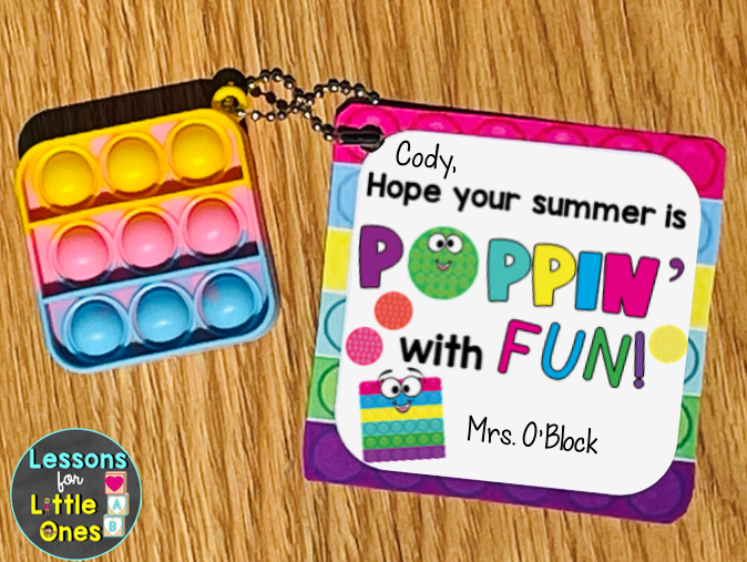 With the huge popularity of pop it fidget toys, your students will LOVE seeing these pop it keychains on their desks the first day of school! Amazon has a large variety of inexpensive fidget toy keychains (see them here). I created 2 different tag options for variety.