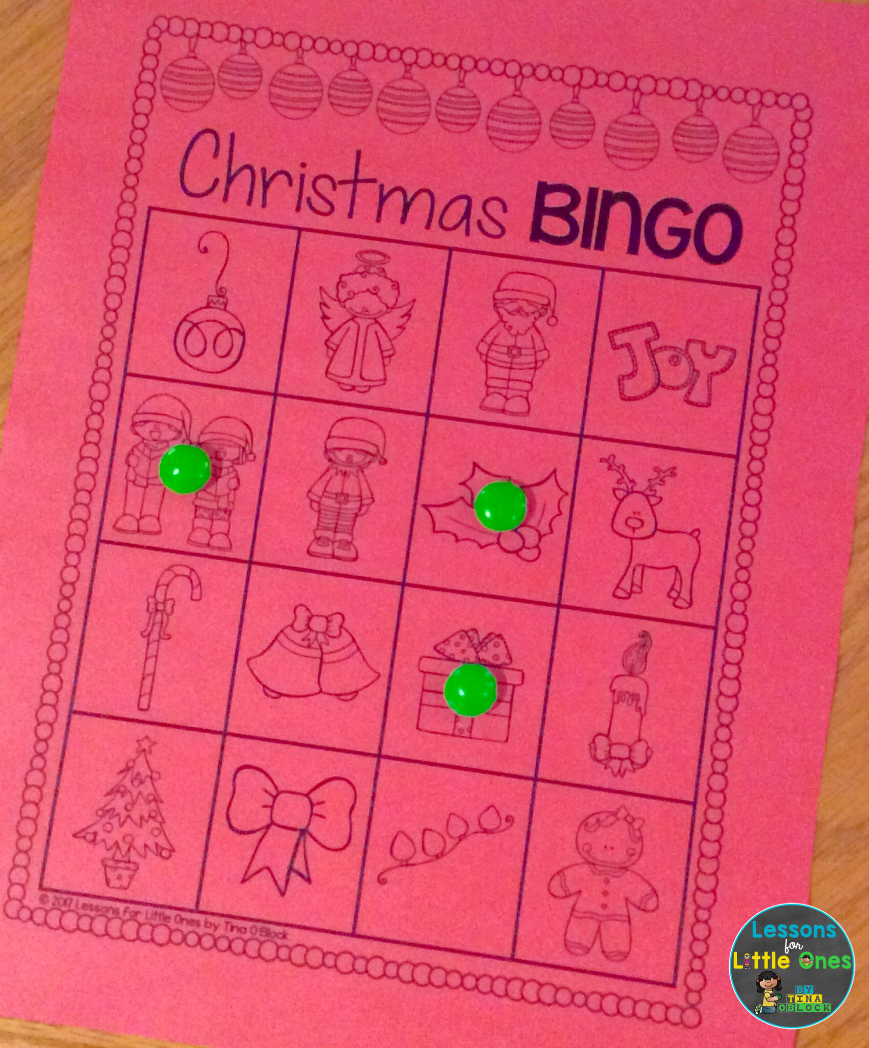 I usually use Christmas M&Ms for “special markers” and then allow students to eat them after they win. You can also use bingo dabbers, holiday erasers, jingle bells, cotton balls, mini marshmallows, etc.