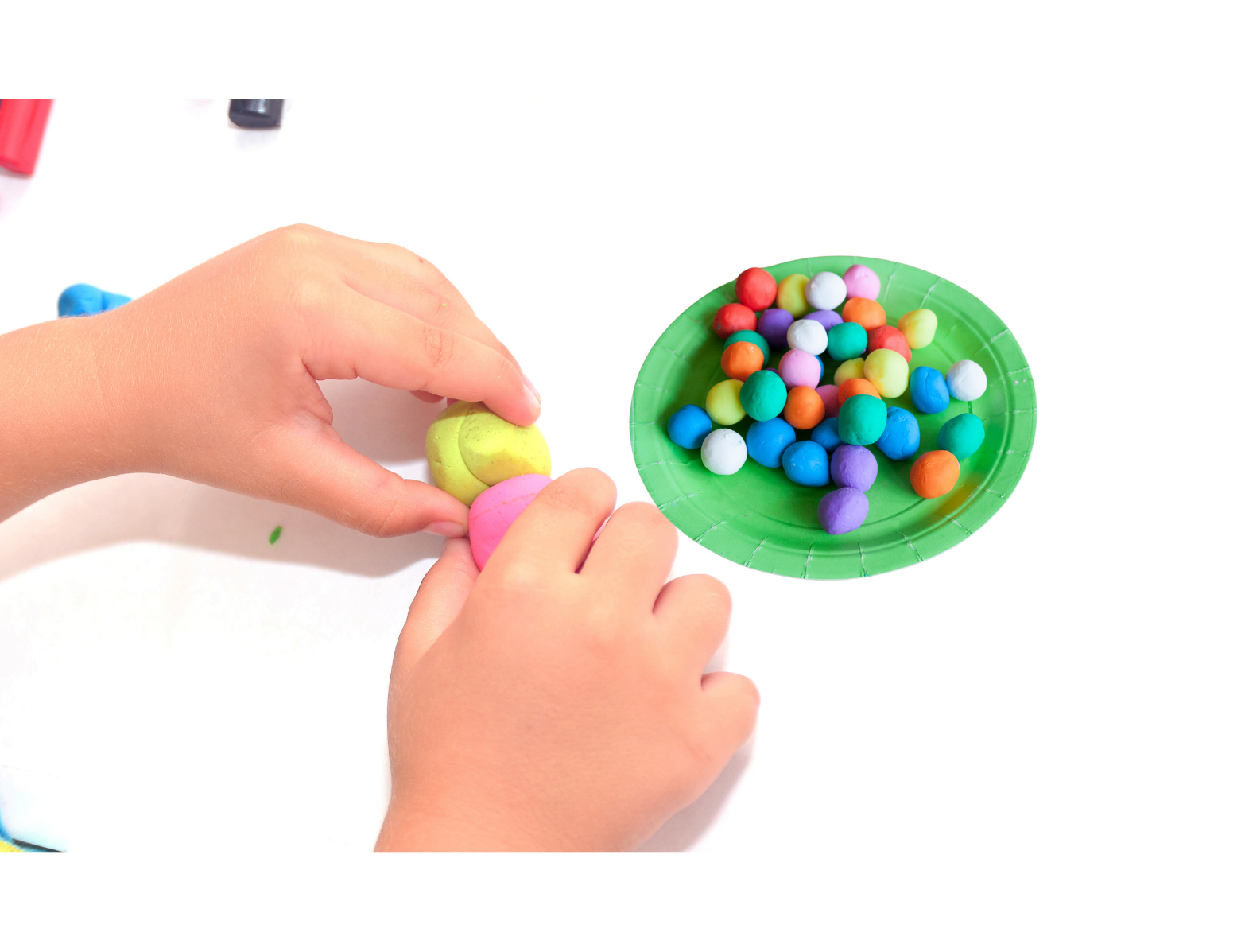 Allow children to use crayon rocks – crayons that are small and shaped like a pebble that elicit the tripod grasp. They develop the grasp in a fun, engaging way. Place them in your art center, writing center, by your easel, etc.