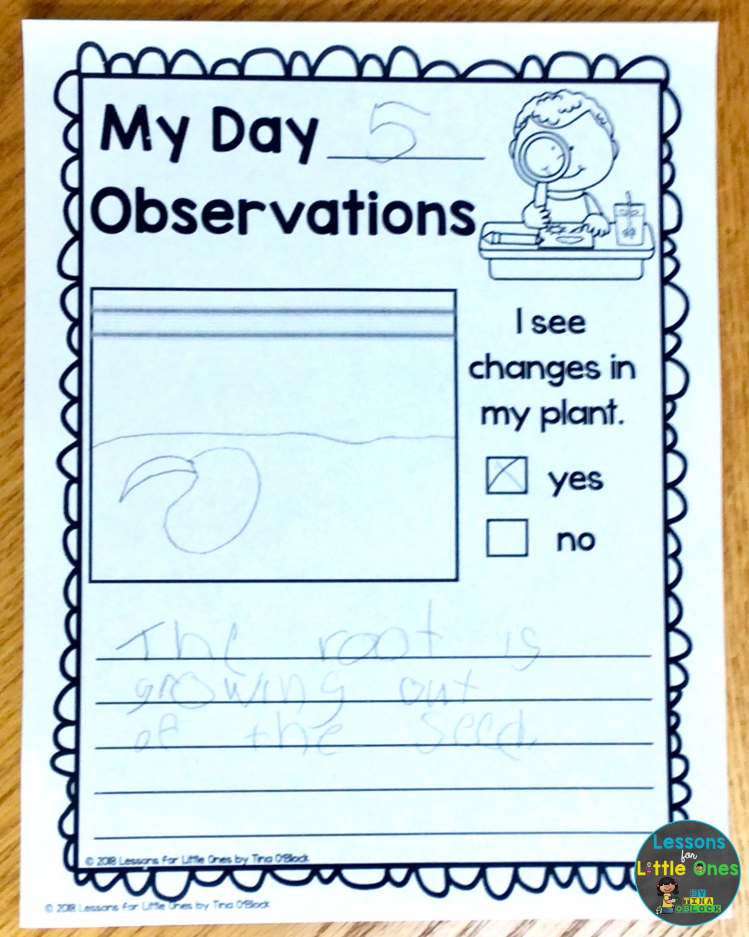 I like having students keep plant journals because they improve their observation and recording skills and give them a record of the seed’s growth. Students do a recording page for each observation.