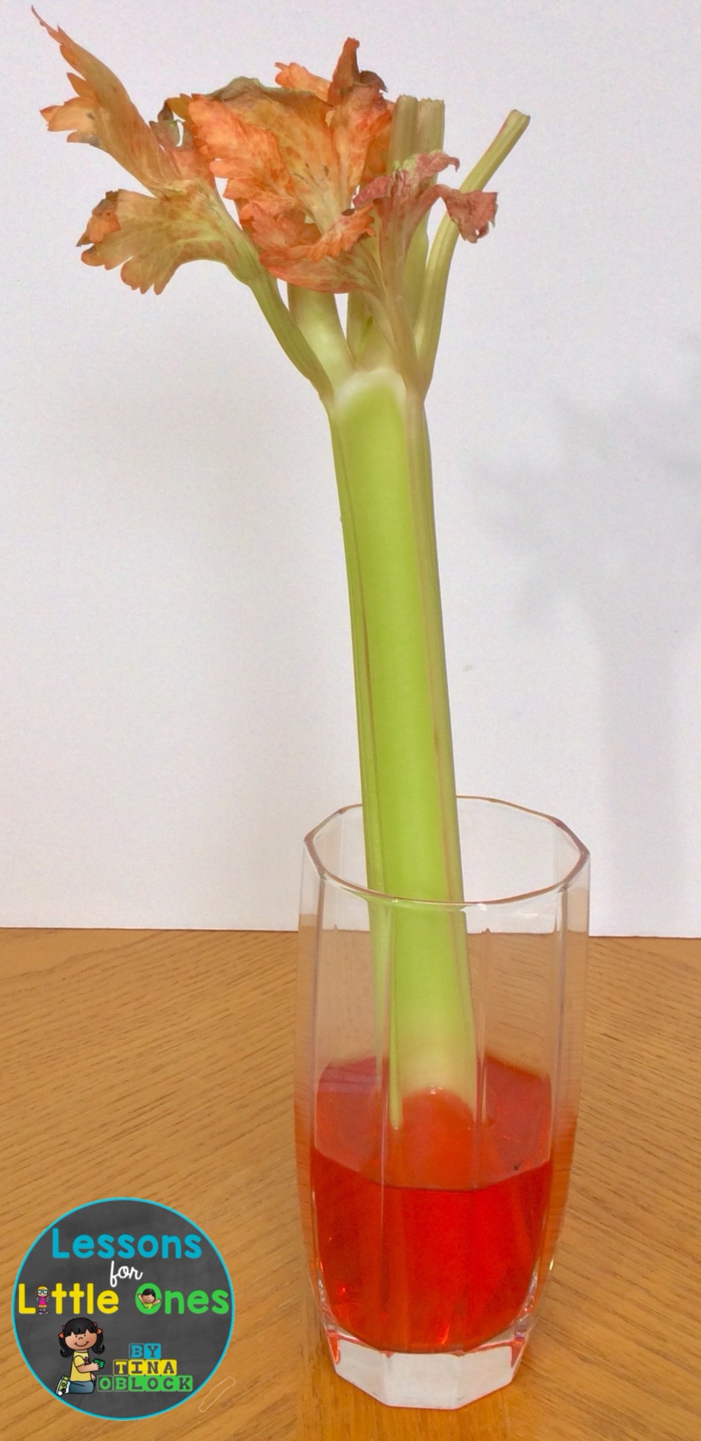 After cutting open the celery we discuss the results. I introduce some bigger vocabulary to them when we talk about the science behind the experiment, but I basically just want them to understand that the water travels up the stem through tiny tubes to the leaves. Here is a simple explanation: